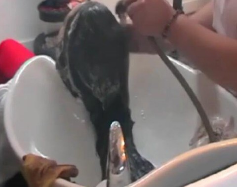 They are friends and they went together to have shampoo in hair salon. In comoon they have also very long dark hair. Thats why this is a great shampoo lovers vÃdeo, with a lots of foam and fantastic parts in slow motion.