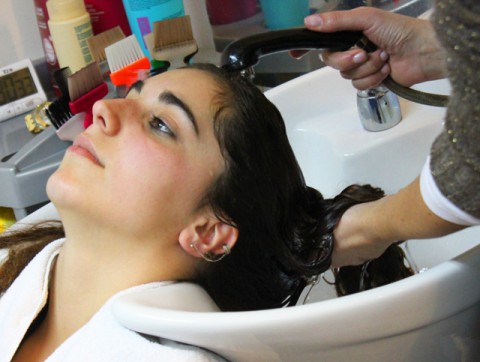 She has a long, light brown and very curled, wich means a splendurous mane. She asked for a pampered shampoo and got it. Long, with lots of foam to cover and massage her volumous hair. Thats what this video shows with all the details, including the special care of the stylist with her symbolic rasta.