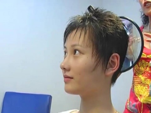 She asked for an extreme change. And the stylist listen to her. So, we have a great transformation from a very long dark straight hair to a very fresh ultra short haircut, a pixie style. Its the first time that we can offer you the making of a pixie style and we made it with all pleasure. We hope you love it!