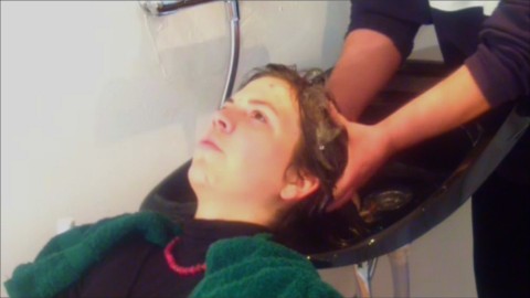 She is not a regular customer of hair salon but this time she decided for a profissional change and looked for a beauty salon, a barbershop. Our cameras were there and this vÃdeo is about her shampoo after years far away of the salon sinks and the hands of stylists. So, here is the record of that uncommon visit.