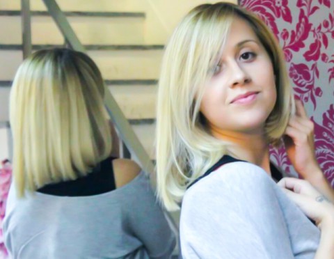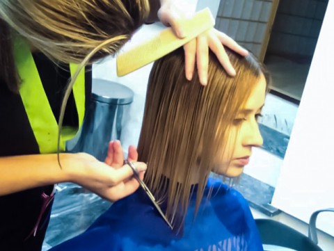 LOVELY BLONDE GIRL GETTING A RENEWED SEXY BOB HAIRCUT