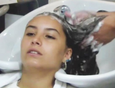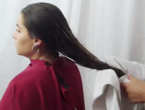 We offer you an extraordinary shampoo on the very long light brown hair of a splendurous young woman. You have it on all details shoed in slow motion in order you dont miss anything. Lots of foam and moments of wonderful long wet hair in a careful washing and massage