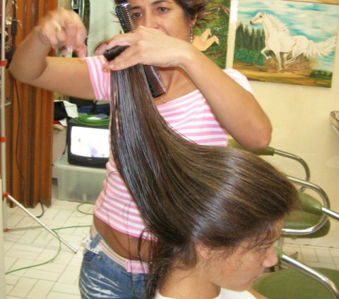 She is a beautiful Young woman with a splendurous long hair. She needs a change for a party and then she opted for an haircut in her long hair, not only a trim but also a layer cut that chanced her face. The stylist ended with a style with help of iron curler and the result is really amazing. You have all details in this great vÃdeo.