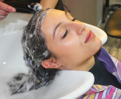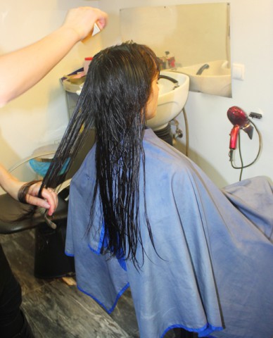 Her hair is very dark, almost naturally black and she weares it very long with bangs. Now it is time to wash it in salon: a very foam shampoo with massage and careful combing. A very sexy vÃdeo indeed!