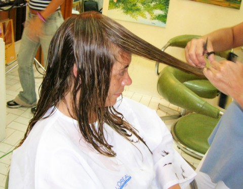 Her hair is light blond, long and naturally waved. It is gorgeous. But from time to time it needs a trim to became healthy, beautiful. It happened now, and our câmeras wera there. So, we have to offer you a fabulous vÃdeo containing all the details of this care in salon. Step to step here is the trim amd the marvellous movements that the stylist made to complete her wonderful job. Unforgetable!