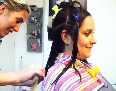 A very long and strong mane transformed in a sweet layered bob, this was the change that she want and got it. But it is not all. After cutting her ponytail, the stylist paint a cashew color giving new shades to her hair, Then the shampoo and, at the end, a hair dryer leting straight her natural waved hair. What a haircut! What a hair change!