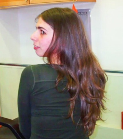 She is a young woman who had his hair very long since she can remember. So, they decided how is to live with a new look and went to the salon to get a straight bob with long bangs. She loved the new style, although estranged the difference. It is really a difference. This clip shows eveything: the dramatic haircut but also a very pampered shampoo and a detailed hair dryer