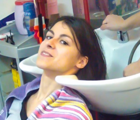 Her hair was long and layered and thats why she wanted something really different. This clip shows the story of a great hair change, a transformation until a medium/short style where the stylist used a razor blade to cut lock after lock. At the end, her look is really shiner, modern... and happy.