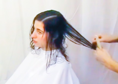 SWEET GIRL WITH CURLED HAIR GETTING AN HAIRCUT AND A STRAIGHT STYLE